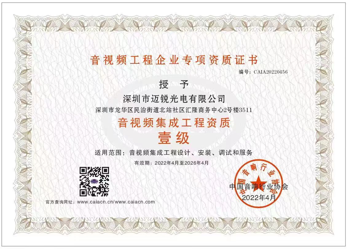 2016—2020年,邁銳LED顯示屏相繼榮獲多項(xiàng)行業(yè)尖端榮譽(yù)資質(zhì),如“中國節(jié)能產(chǎn)品認(rèn)證證書”“建筑業(yè)企業(yè)資質(zhì)證書”“鋼結(jié)構(gòu)工程專業(yè)承包二級”“AAA級信用企業(yè)”等。